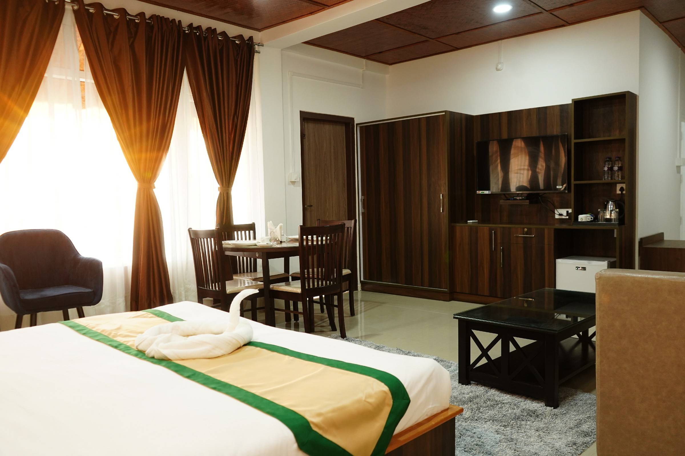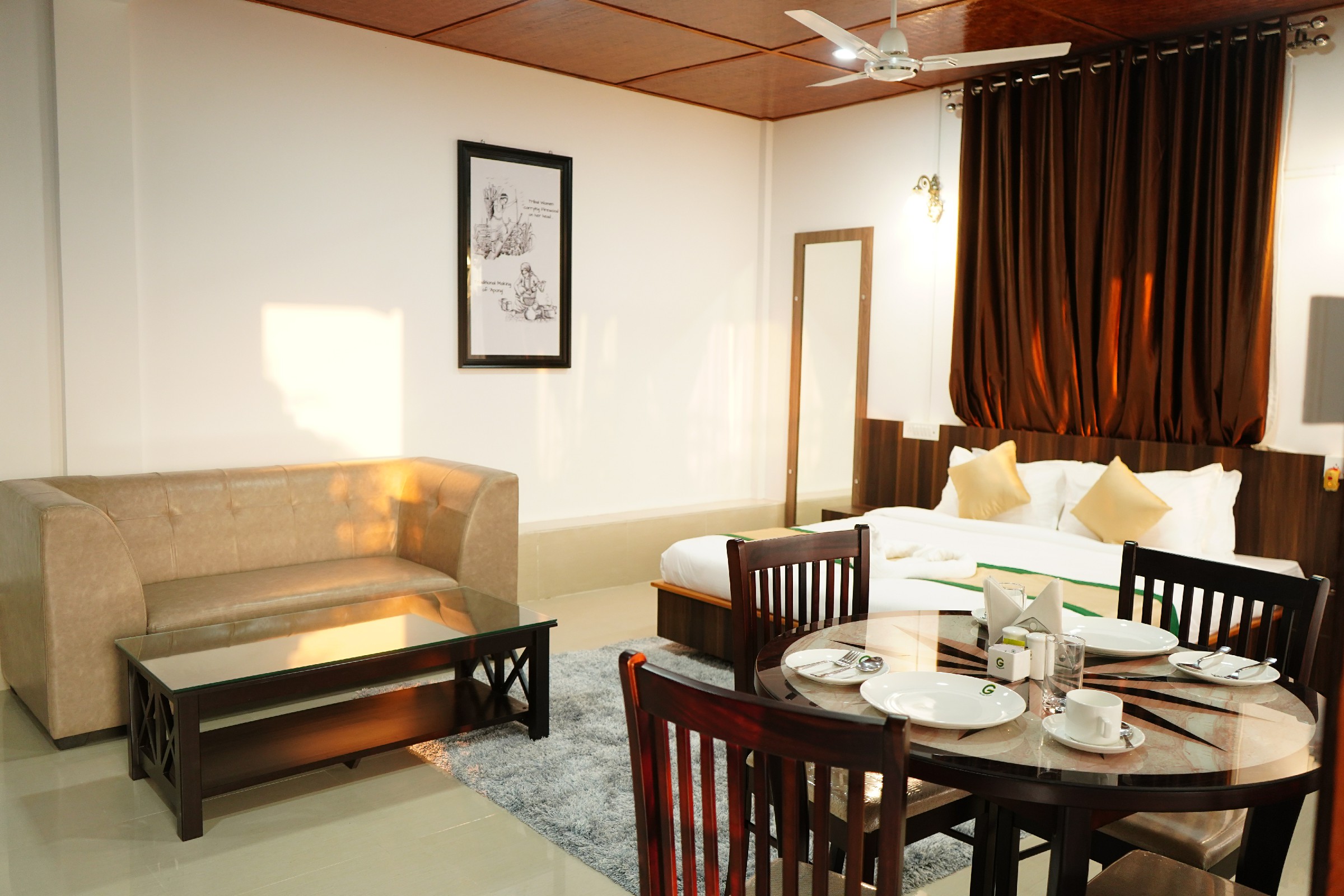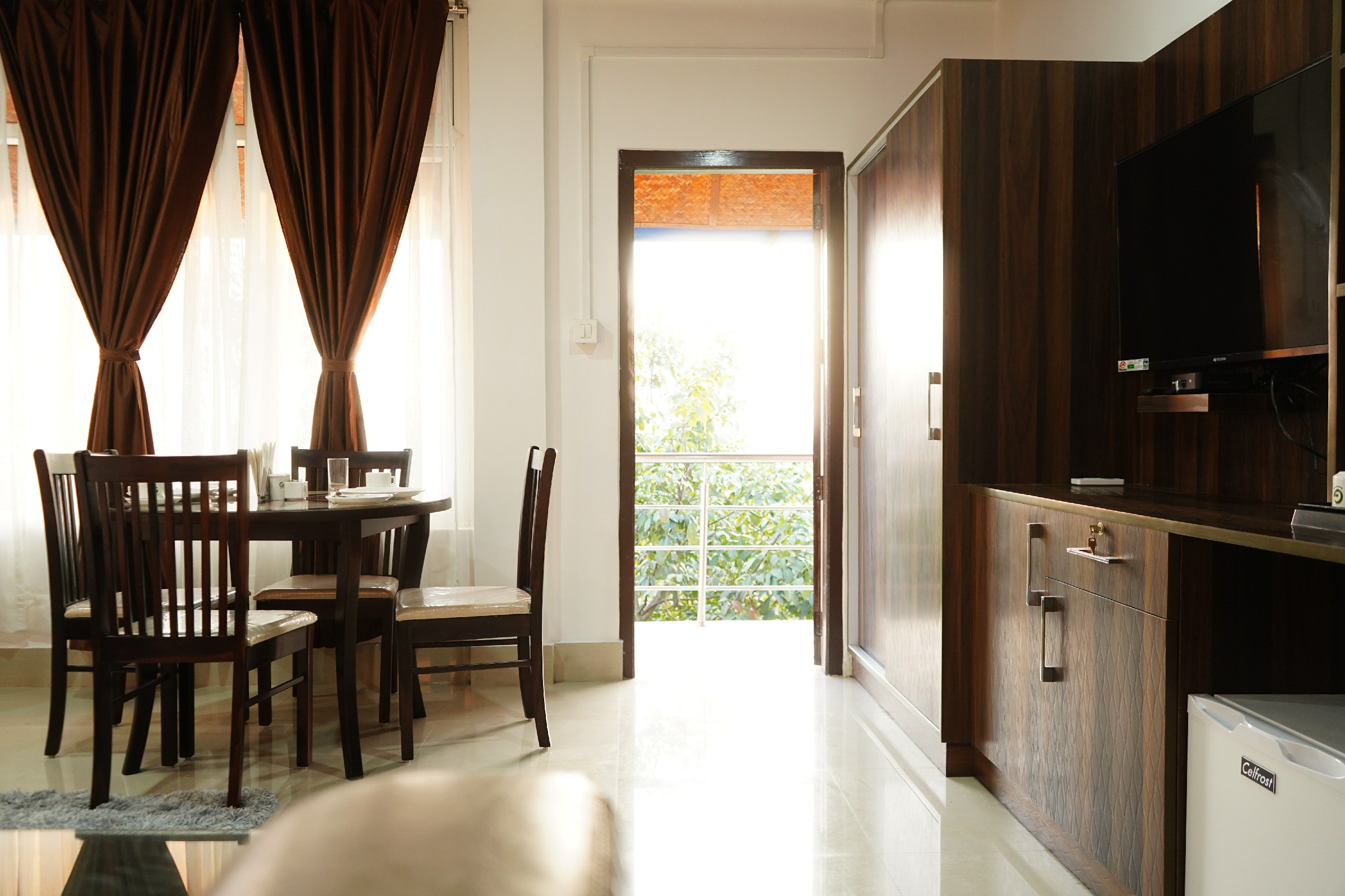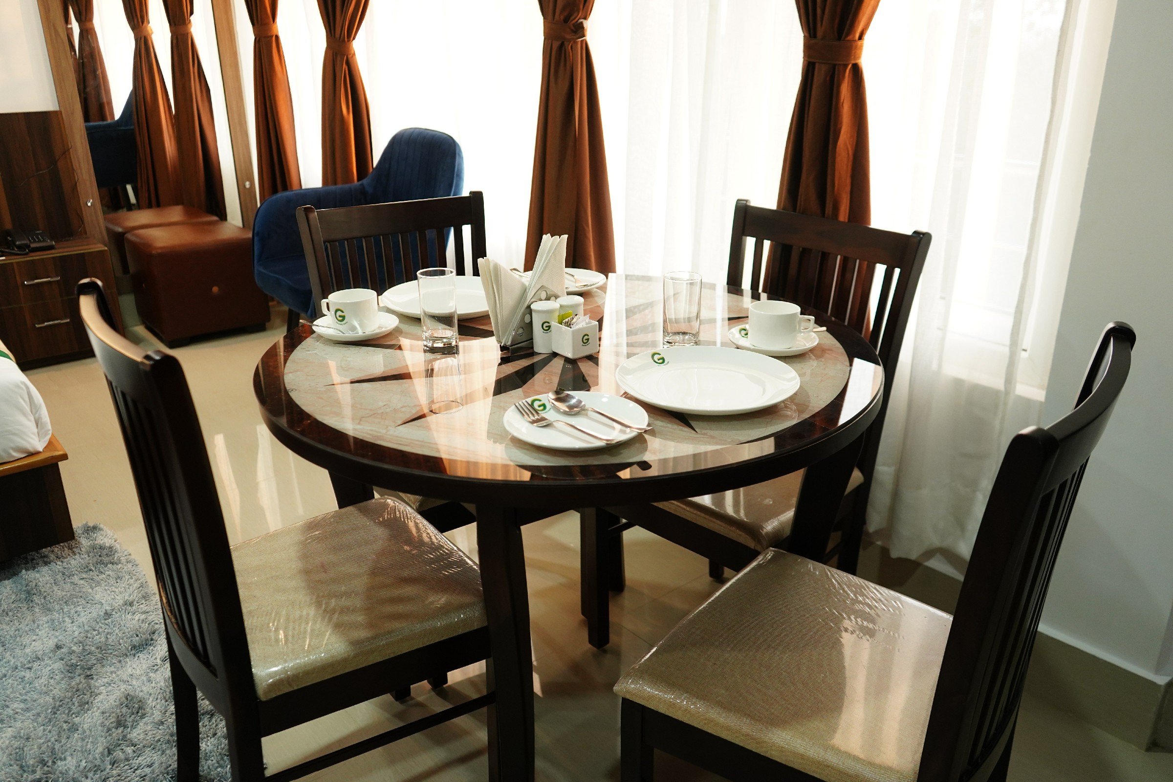 The room also features a private dining table for guests to enjoy their meals in the comfort of their own room. The table is perfect for intimate dinners or for those who prefer to dine in privacy.